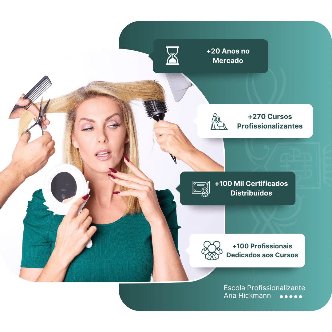 Na Escola Ana Hickmann, oferecemos mais de 270 cursos nas áreas da beleza e tecnologia, com foco total na prática e no que o mercado realmente precisa. Independentemente da sua idade ou formação, aqui você encontra uma oportunidade real de mudar de vida com qualidade, estrutura e certificação reconhecida.